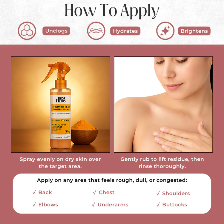 Our secret weapons is Kojic Acid and Turmeric that hydrate and brighten while they exfoliate.